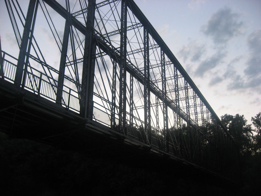 The Laughery Creek Bridge is a triple whipple truss bridge on the border of Dearborn County, Indiana, and Ohio County, Indiana. It crosses Laughery Creek. This bridge was built in 1878. The Wrought Iron Bridge Company, a prolific late 19th-century bridge company, constructed the bridge. The bridge is seated on stone abutments. The deck surface is not original and is currently concrete. The bridge, nearly 300 feet in length, is a single span pin connected triple intersection Whipple through truss, and is the only example in the world of this truss type. The name bridge's nickname, "Triple Whipple Bridge" is a play on words. The double-intersection Pratt, which was called the Whipple truss configuration, was a far more common variation of the standard Pratt configuration. Since the Laughery Creek Bridge's members have three intersections instead of two, this gives rise to the "Triple Whipple" name. This bridge was listed on the National Register of Historic Places in 1976. After closing in the 1970s, the bridge fell into serious disrepair, landing it on Indiana's 10 Most Endangered places list in 1993. A combination of federal funds and matching funds from Dearborn and Ohio Counties allowed the bridge to be refurbished and converted to pedestrian use in 2009.